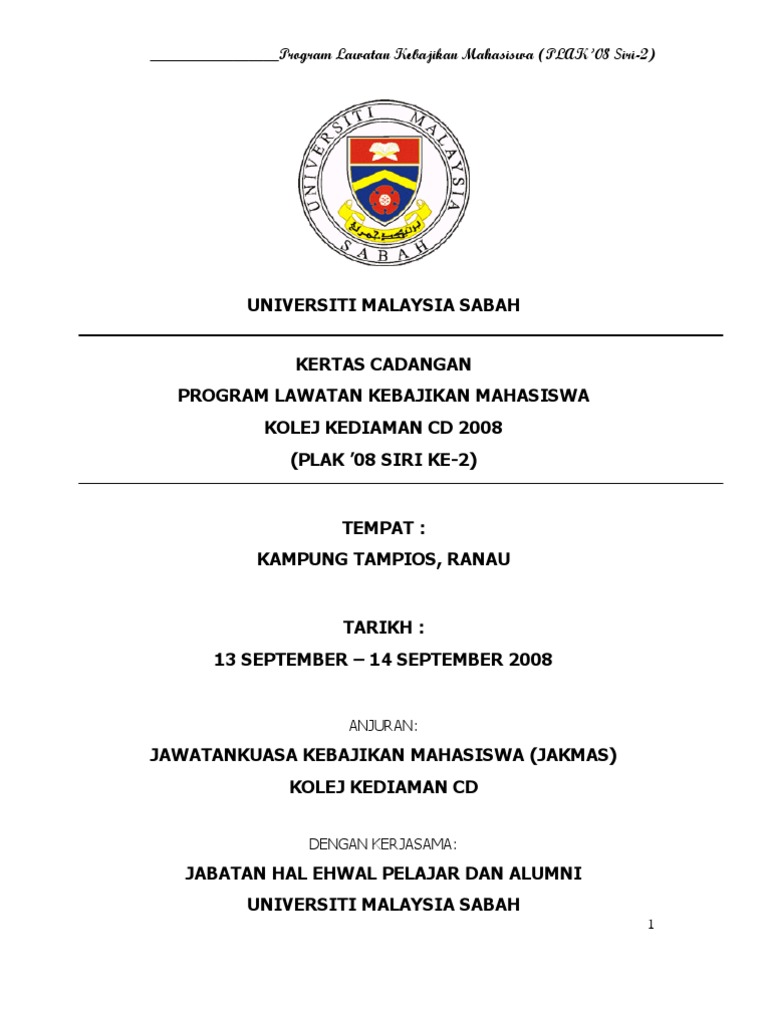 . You are on page 1 of 2. Surat Minta Sumbangan For Later. Universiti tun hussein onn malaysia kertas kerja program towards 1st class anjuran jabatan kaunseling dan kerjaya pusat pembangunan dan pengembangan pelajar 18 hingga 20 februari 2011 nama program.